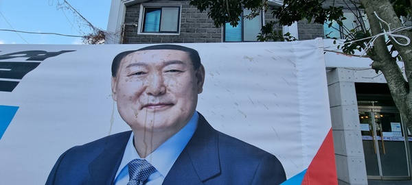 앞서 지난 16일과 18일에는 윤석열 국민의힘 대선후보 현수막에 각각 이물질이 투척되거나 현수막이 통째로 사라지는 일도 발생했다.