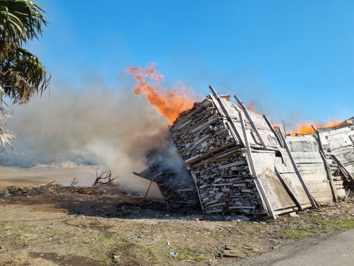 지난 26일 화재가 발생한 제주시 애월읍 광령리 폐자재 야적장의 모습. 사진=제주서부소방서 제공