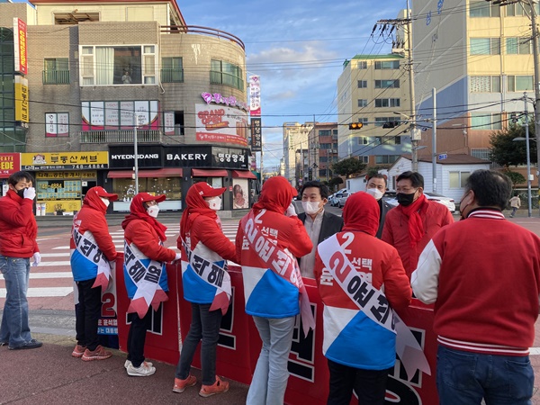 앞서 국민의힘 제주도당 제주시갑 선대위는 지난 5일 제주시 노형동 백록초등학교 인근에서 원희룡 전 제주도지사와 김철웅 도당 선대위 공보단장 등이 참여한 가운데 총력유세를 펼쳤다.