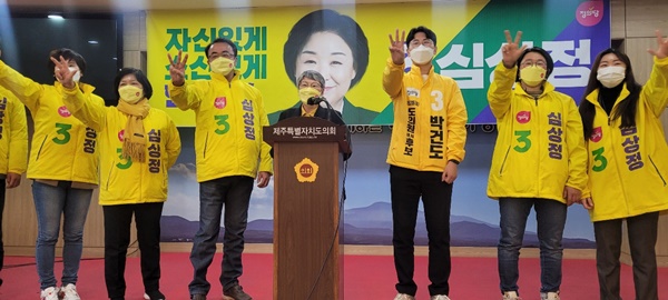 정의당 심상정 제주선대본부은 8일 제주도의회 도민카페에서 기자회견을 열고 유권자들에게 심상정 대선후보에 대한 마지막 표심 공략에 나섰다. 강다혜기자