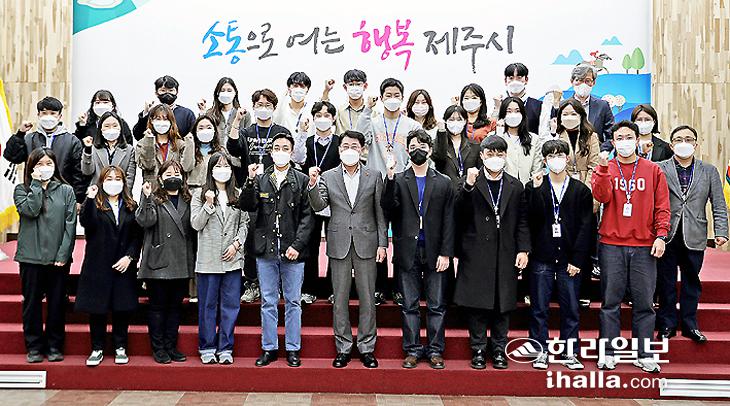 제주시는 지난 11일 창의적 발상과 혁신적 시책 개발로 시민이 만족하는 행정서비스를 제공하기 위해 2022년 이루미 시책개발팀 전체 회의를 개최했다. 이루미 시책개발팀은 7급 이하 공직자 39명으로 구성됐다.