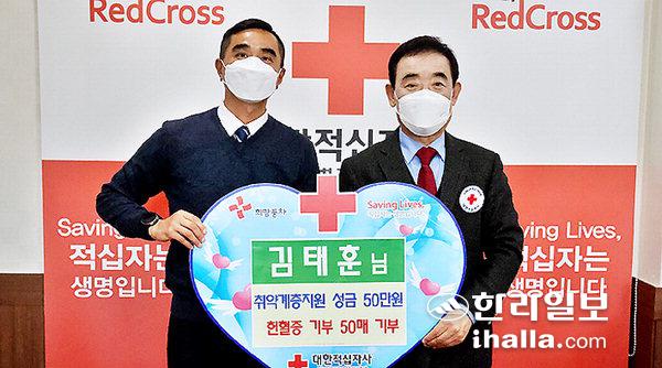 제주시 아라동에 거주하는 김태훈씨는 지난 11일 대한적십자사제주특별자치도지사(회장 오홍식)를 방문해 취약계층 지원을 위한 후원금 50만원과 헌혈증 50매를 전달했다.