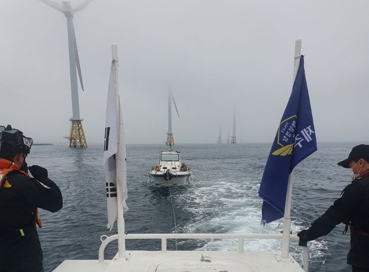 표류하던 모터보트 풍력발전기 충돌 직전 구조