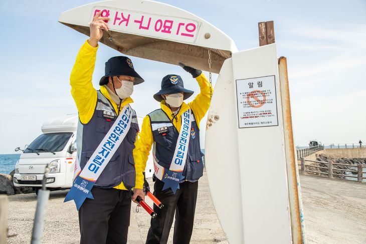 제주해경청은 지난 2019년부터 2년간 자원봉사 형식으로 시범 운영했던 연안안전지킴이 사업을 2021년 도내 위험구역 9개소에 18명을 배치해 정식 운영하며 최근 3년 간 연안사고 발생률이 25% 감소하는 효과를 얻었다.