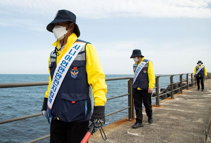만 60세 이상 지역주민으로 구성된 제주해경청 '시니어 연안안전지킴이'가 21일부터 본격적인 활동에 나섰다. 제주해경청 제공