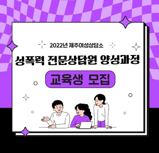 (사)제주여성인권연대 부설 제주여성상담소는 '2022년 성폭력 전문상담원 양성과정' 교육생을 모집한다고 22일 밝혔다.