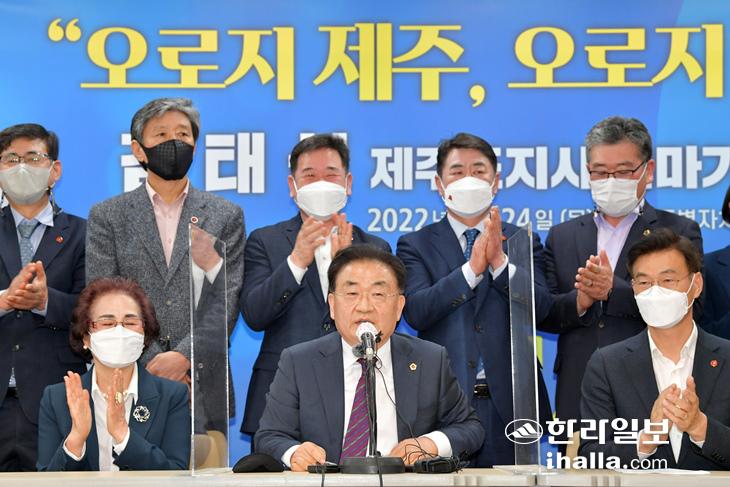 김태석 제주도의회 의원이 24일 제주도의회 도민카페에서 기자회견을 열고 제주도지사 출마를 선언했다. 강희만기자
