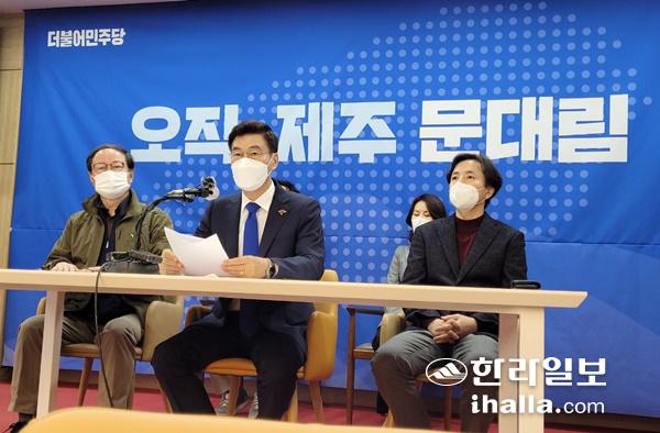 문대림 예비후보는 7일 제주도의회 도민카페에서 기자회견을 열고 정책공약을 발표했다. 강다혜기자