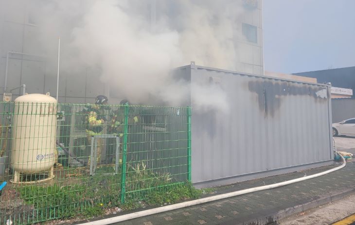 7일 오전 화재가 발생한 제주시 노형동 한 음식점 자재창고의 모습. 제주소방서 제공