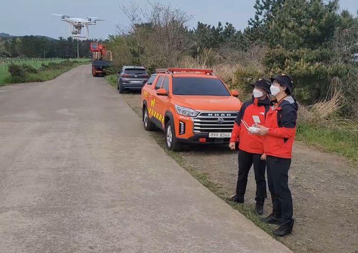 18일 오전 실종된 A 씨를 찾기 위한 드론 수색 작업이 진행되고 있다. 제주소방서 제공