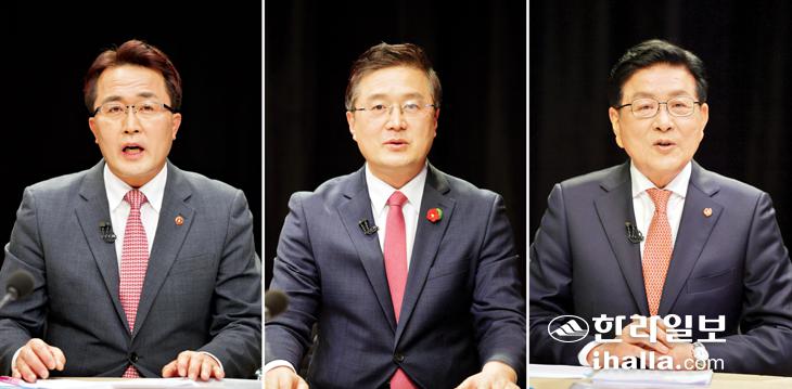 사진 왼쪽부터 문성유 후보, 장성철 후보, 허향진 후보