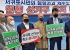 서귀포시 시민사회 25개 단체는 19일 시청 기자실에서 기자회견을 갖고 지역 환경, 지리적 여건, 행정 수요, 지역 대표성, 인구 증가 등을 종합적으로 검토해 현행 서귀포 선거구 10곳을 유지해야 한다고 촉구했다. 백금탁 기자