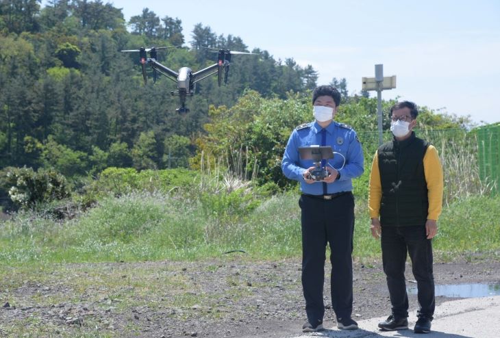 '드론 전문인력 양성 교육과정'에 참여한 해양경찰관이 드론 조종 실습을 하고 있다. 제주지방해양경찰청 제공