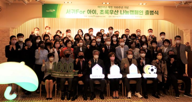 지난달 29일 열린 \\\'서귀For 아이, 초록우산 나눔캠페인\\\' 출범식에서 참석자들이 기념촬영을 하고 있다. 초록우산 어린이재단 제공