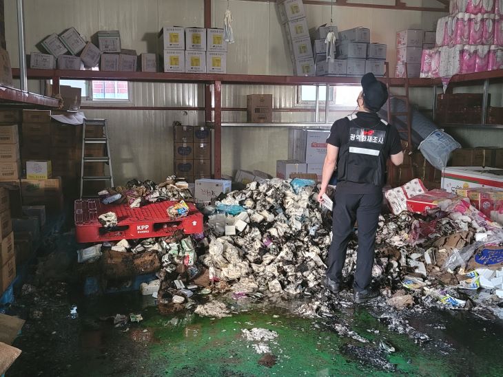 지난 6일 화재가 발생한 제주시 화북1동 창고에 대한 화재 원인 조사가 진행되고 있다. 제주소방서 제공