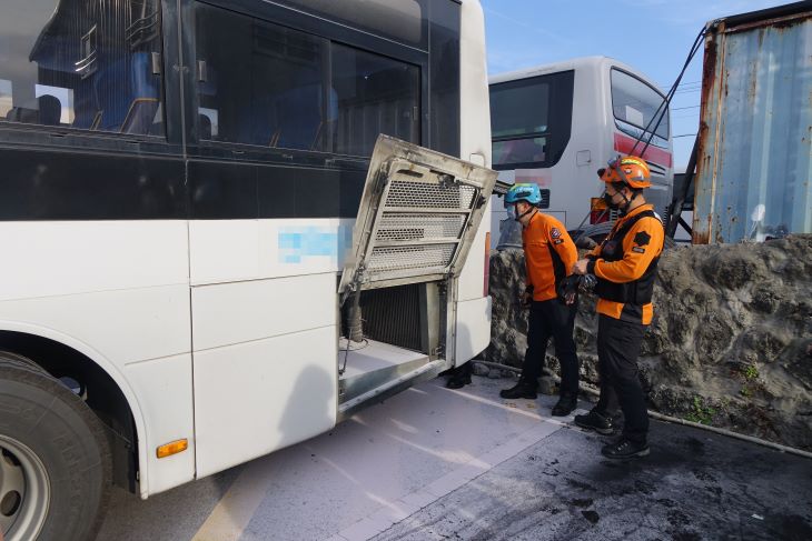 제주소방서 관계자들이 불이 난 버스에 대한 화재 조사를 실시하고 있다. 제주소방서 제공