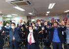 제8회 전국동시지방선거 출구조사가 발표된 1일 오후 7시30분 오영훈 후보(위) 캠프와 허향진 후보(아래) 캠프의 희비가 엇갈리고 있다. 강희만기자