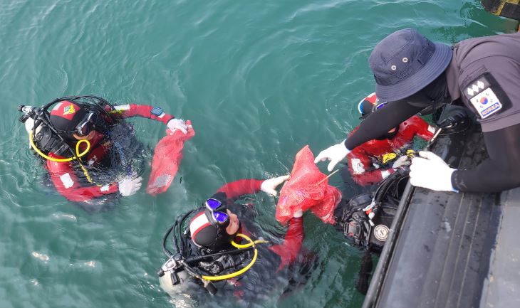 제주해양경찰서는 지난 15일 제주시 화북항 일대에서 민·관 합동 수중·연안 정화활동을 실시했다. 제주해양경찰서 제공