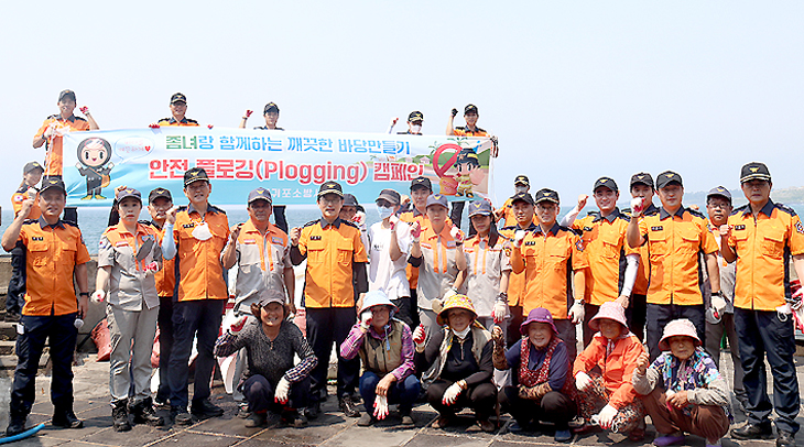 서귀포소방서는 16일 서귀포 색달해안가 일대에서 소방공무원 및 의용소방대, 관할 어촌계 해녀 등 40여명이 참석한 가운데 깨끗한 바당만들기 119안전 플로깅(조깅을 하면서 동시에 쓰레기를 줍는 운동) 행사를 진행했다. 이번 119안전 플로깅에서는 해안가에 버려진 폐어구 및 스티로폼 부표, 생활쓰레기 등을 수거하는 환경정화활동이 진행됐다.