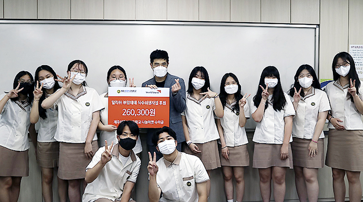 제주외국어고등학교는 지난 15일 '나눔마켓'을 통해 마련된 수익금을 월드비전 제주나눔센터에 전달했다. 기부금은 아프리카 말라위 부암테테 지역의 식수사업에 사용될 예정이다. 제주외국어고는 월드비전과 함께 다양한 활동을 진행하고 있다.