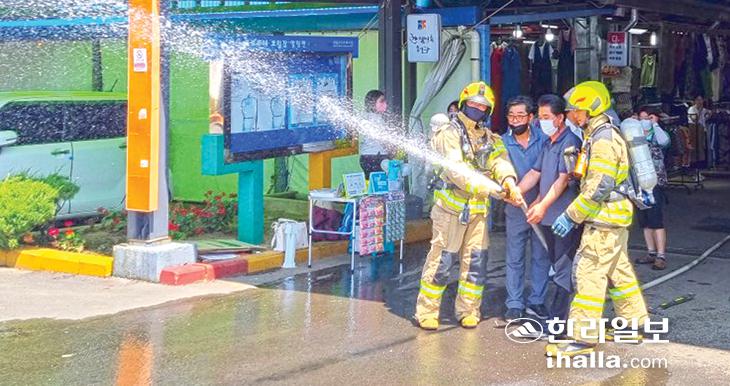 서부소방서 한림119센터는 지난 19일 한림민속오일시장 자율소방대와 합동으로 전통시장 화재 발생 대비 훈련을 실시했다.