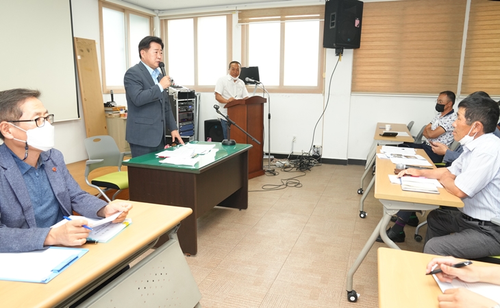 21일 월정마을을 찾아 간담회하는 오영훈 제주지사. 제주도청 제공