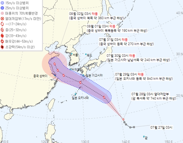 제5호 태풍 '송다' 예상 진로도. 기상청 홈페이지 캡처