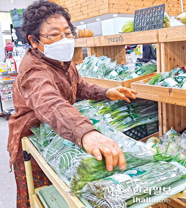 안덕농협 로컬푸드 직매장에서 농가가 판매할 농산물을 진열하고 있다.