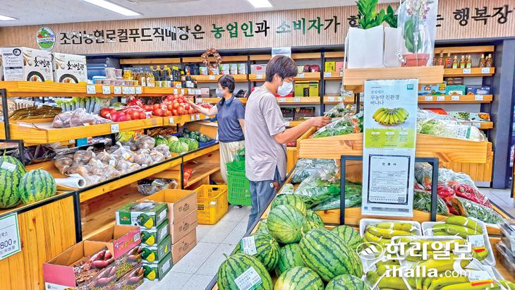 조천농협이 독립매장으로 운영중인 로컬푸드 직매장에서 소비자들이 물건을 고르고 있다.