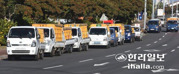 가공용 감귤 수매 대기 차량. 한라일보DB
