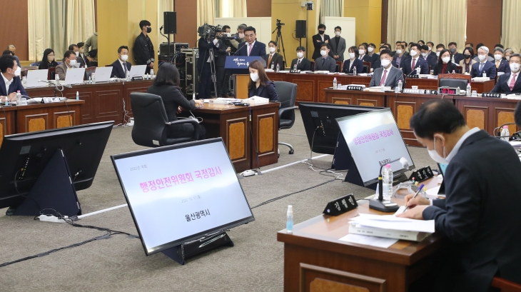 17일 오전 울산시청 대회의실에서 열린 국회 행정안전위원회의 울산시 국정감사. 행안위는 오는 21일 오전 10시 제주도청 본관 4층 탐라홀에서 제주도에 대한 국정감사를 진행한다. 연합뉴스