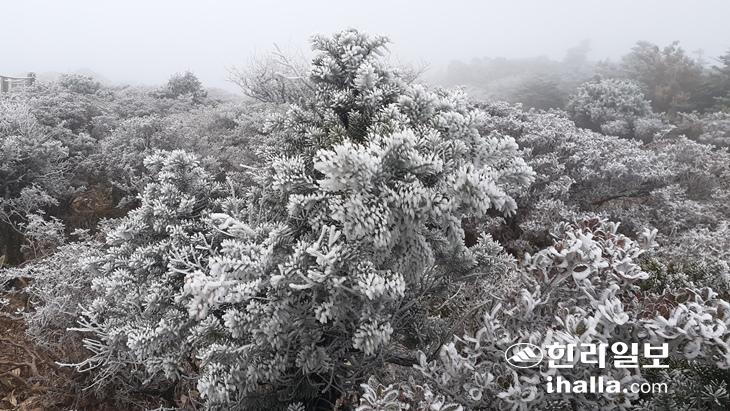 지난 18일 한라산 영실 등반로 선작지왓 상고대.