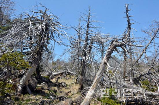 고사목 현황 분석 결과, 최근 4년 간 1만2957본의 고사목이 발생했으며 고사목의 93%가 해발고도 1401~1800m 구간에 분포하고 있었다.