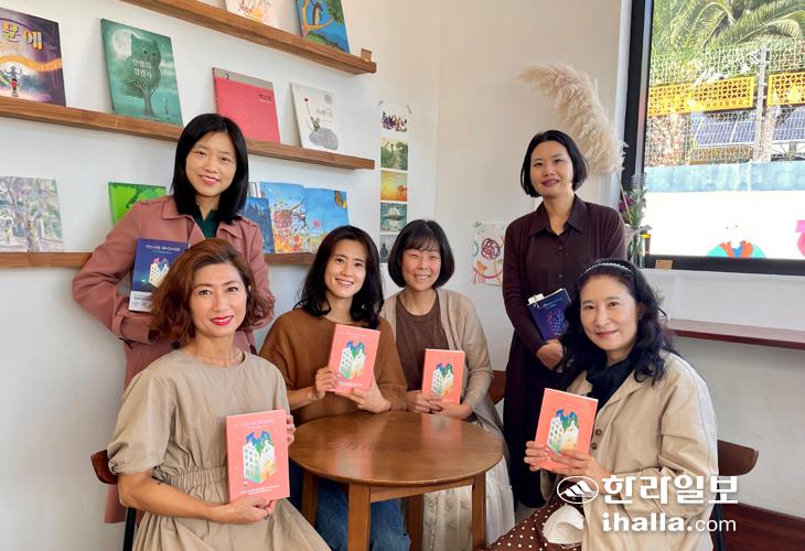 초등학교 앞 작은 카페에서 매주 목요일 오전에 만나는 서호독서모임 회원들이 소설 '미드나잇 라이브러리'를 들고 포즈를 취했다. 서귀포시민의책읽기위원회