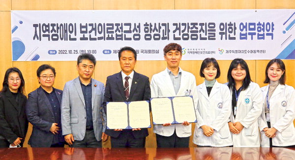 제주대학교병원 제주지역장애인보건의료센터(센터장 최준환)는 지난달 25일 제주특별자치도 수어통역센터(센터장 민태희)와 제주 지역 장애인 보건의료접근성 향상과 건강증진을 위한 업무 협약을 체결했다.