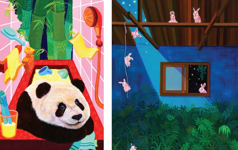 김지영 작품. 왼쪽부터 '초대 받은 판다', '잠 못 이룬 이상한나라 바쁘다 바뻐 토끼 씨'