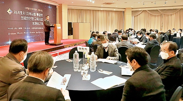 서귀포시는 지난 22일 서귀포 칼호텔에서 도의원, 도 방역총괄과, 지역 내 주요 기관단체장 및 지역주민, 서귀포의료원과 소방 관계자 등 사업 참여기관 130여 명이 참석한 가운데 '지역사회 통합형 의료안전망 구축사업 성과보고회'를 개최했다.