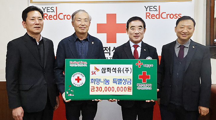 삼화석유(주)(대표이사 홍성준)는 최근 대한적십자사제주특별자치도지사(회장 오홍식)를 방문해 지역사회 소외된 이웃을 돕는 데 써달라며 희망나눔 특별성금 3000만원을 전달했다.