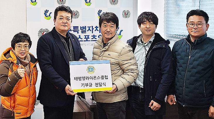 태평양라이온스클럽(회장 양경옥)은 지난 5일 농아인 체육인의 육성과 농아인 체육인 활성화를 위해 제주특별자치도농아인스포츠연맹(회장 한재방)에 후원금을 전달했다.
