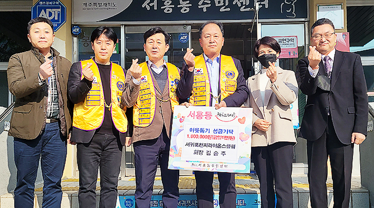 서귀포천지라이온스클럽(회장 김승주)은 지난 5일 서홍동주민센터와 천지동주민센터를 방문해 현금 100만원을 각각 전달했다.
