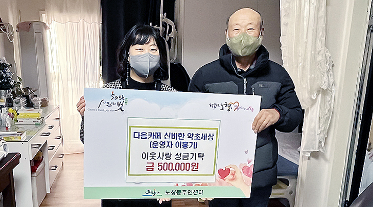 인터넷 다음카페 '신비한 약초세상'(운영자 이홍기)은 지난 5일 제주시 노형동 관내 어려운 이웃을 방문해 성금 50만원을 전달했다.