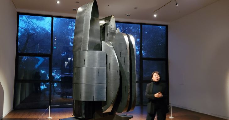 지난 13일 진행된 도내 문화부기자 현장답사에서 박남희 예술감독은 제주의 자연과 역사 속의 인물 김만덕을 기리는 윤석남과 박능생 작가의 작품이 전시된 현대미술관 공간에 대해 "제주를 생각하며 도민에게 보내는 오마주"라고 소개하며 관람을 권했다.
