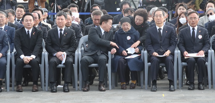 3일 열린 제75주년 제주4·3희생자 추념식에 참석한 내빈들. 제주도사진기자회