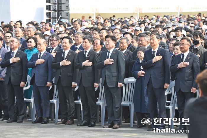 [한라일보] 제75주년 제주4·3 희생자 추념식이 3일 오전 제주4·3평화공원에서 윤석열 대통령을 대신해 한덕수 국무총리와 유족. 도민, 각계 인사 등이 참석한 가운데 봉행됐다.