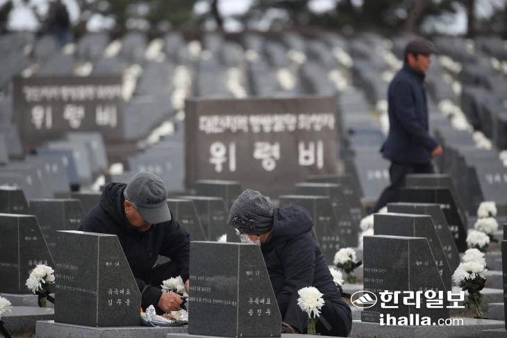 4일 제75주년 4·3추념식이 열린 제주4·3평화공원을 찾은 4·3희생자 유족들. 제주도사진기자회