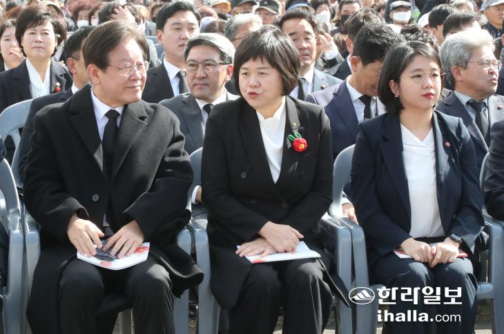 4일 제75주년 4·3추념식을 찾은 이재명 더불어민주당 대표와 이정미 정의당 대표. 제주도사진기자회