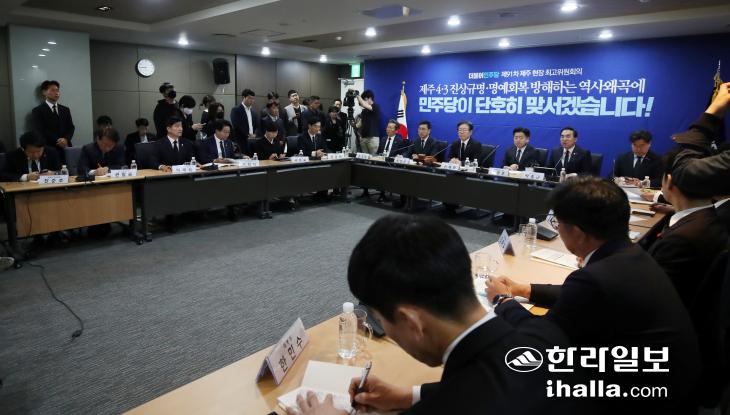 3일 제주 4·3기념관에서 열린 더불어민주당 최고위원회의. 제주도사진기자회
