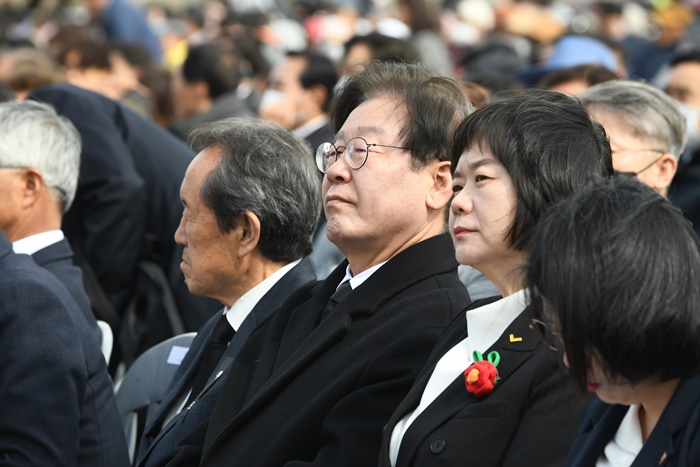 반면 윤석열 대통령, 김기현 대표, 주호영 원내대표 등 정부·여당 지도부 인사들은 이날 모두 불참했다. 대신 국민의힘은 이날 제주 4·3사건과 관련한 메시지를 내는 것으로 추모를 대신했다.
