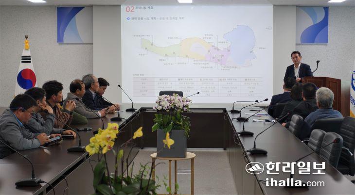 4일 오후 제주어류양식수협 대회의실에서는 '오등봉공원 민간특례사업 설명회'가 진행됐다.