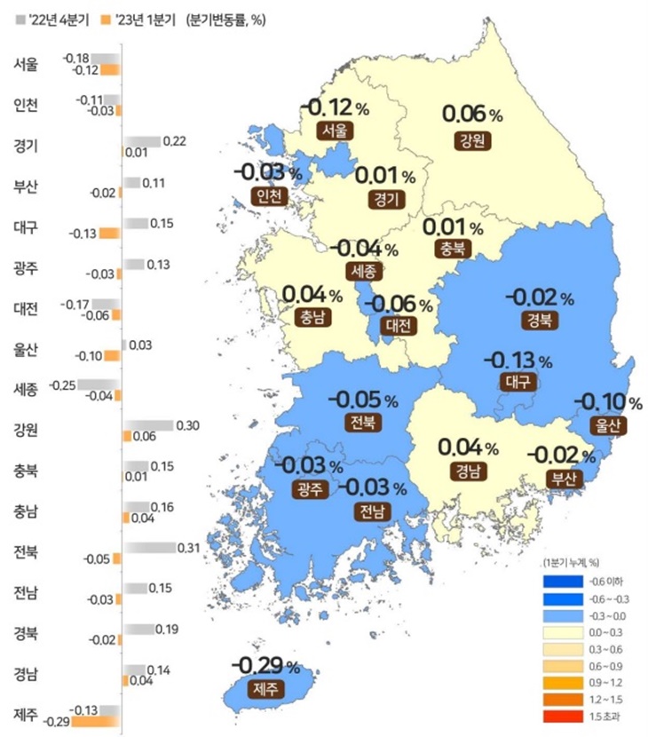 2023년 1분기 전국 지가 변동률. 국토교통부